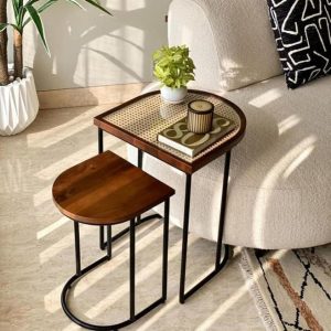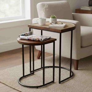 Chất liệu: khung sắt sơn tĩnh điện kết hợp gỗ tần bì, nhựa đan